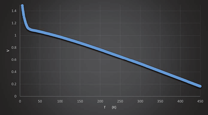 | Si-540 “N” 校準(zhǔn)范圍(4.2K to 450K) Si-540 “NN” 校準(zhǔn)范圍(1.5K to 450K) 校準(zhǔn)精度: | +/- 0.03K from 1.5K to 25K +/- 0.1K from 25K to 450K |